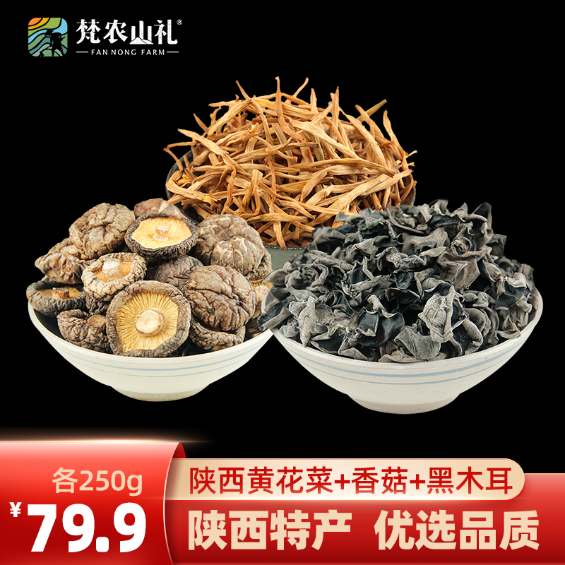 陕西特产秦岭干货黑木耳香菇干黄花菜组合特级食用农产品煲汤材料热门设计联盟服务商