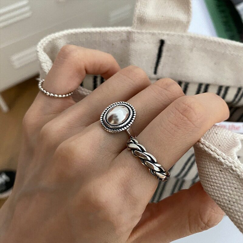 韩版s925纯银戒指复古时尚个性港风设计感开口食指戒冷淡风高级感热门设计联盟服务商